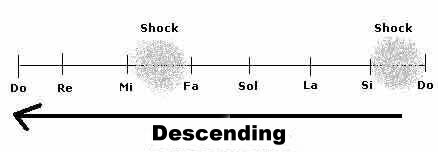 The first shock of the descending octave scale must have a higher force and higher tone than the second. Actually Do already contains the lower vibration, which is why descending octave scales are easier.